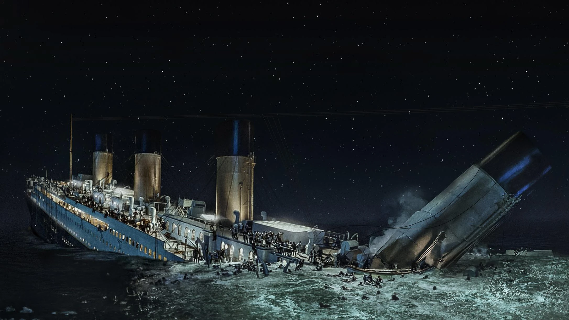 Titanic's fourth funnel remained standing after breaking in half.