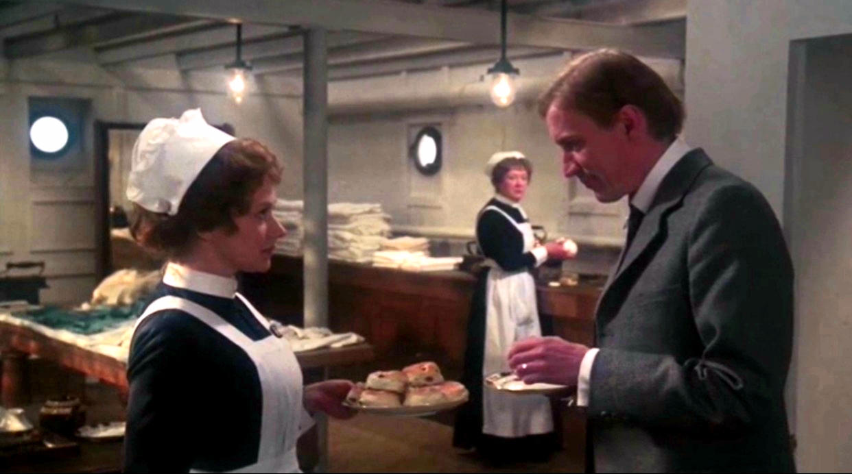 The next day, Thomas Andrews came to the linen room, Andrews was greeted by Sloan and Violet Jessop. They then gave Andrews a cup of tea and some fresh scones from the First Class bakery.