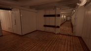 The Crew Alleyway (or Scotland Road) was a long corridor that spanned the entire length of the ship on the port side of E Deck. It was used by crew members and third class passengers to quickly move between the ends of the ship. There was also an entrance from shore here, single men boarded the ship at this entrance and ended up in Scotland Road. Several Third Class areas could be reached from Scotland Road like the open space and the dining room. The boiler rooms also had an exit on Scotland Road.