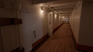 The starboard side was formed by steel bulkheads housing the boiler, engine and turbine casings. Between the casings were smaller passageways leading to the Starboard First Class cabins.
