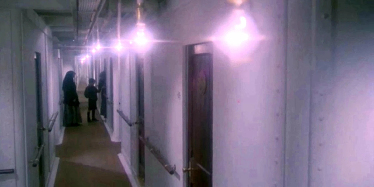 Along the port-side of the passageway were several crew dormitories situated amidships housing Titanic's First and Second Class waiters, stewards and restaurant staff. the portside walls along with the dormitories and lavatories were paneled with white enameled "tongue and groove" panels.