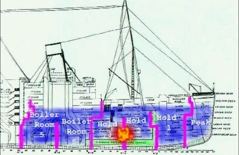 The explosion caused major damage to Cargo Hold 1 - 3, Boiler Room 5 and 6 and the Forepeak Tank, water started to flood through these conpartments rapidly.
