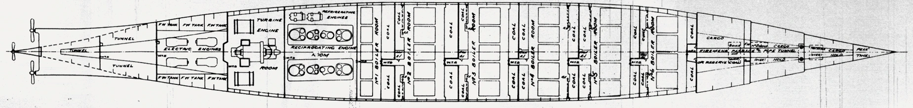 The name 'Tank Top' stems from the space inbetween the plates on the bottom of the keel and the plates on this deck. The space was subdivided into ballast tanks as well as tanks for salt water.