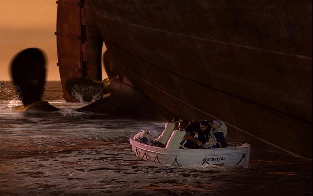 Britannic's Lifeboat heading into the propeller. (Britannic 2000 Movie)